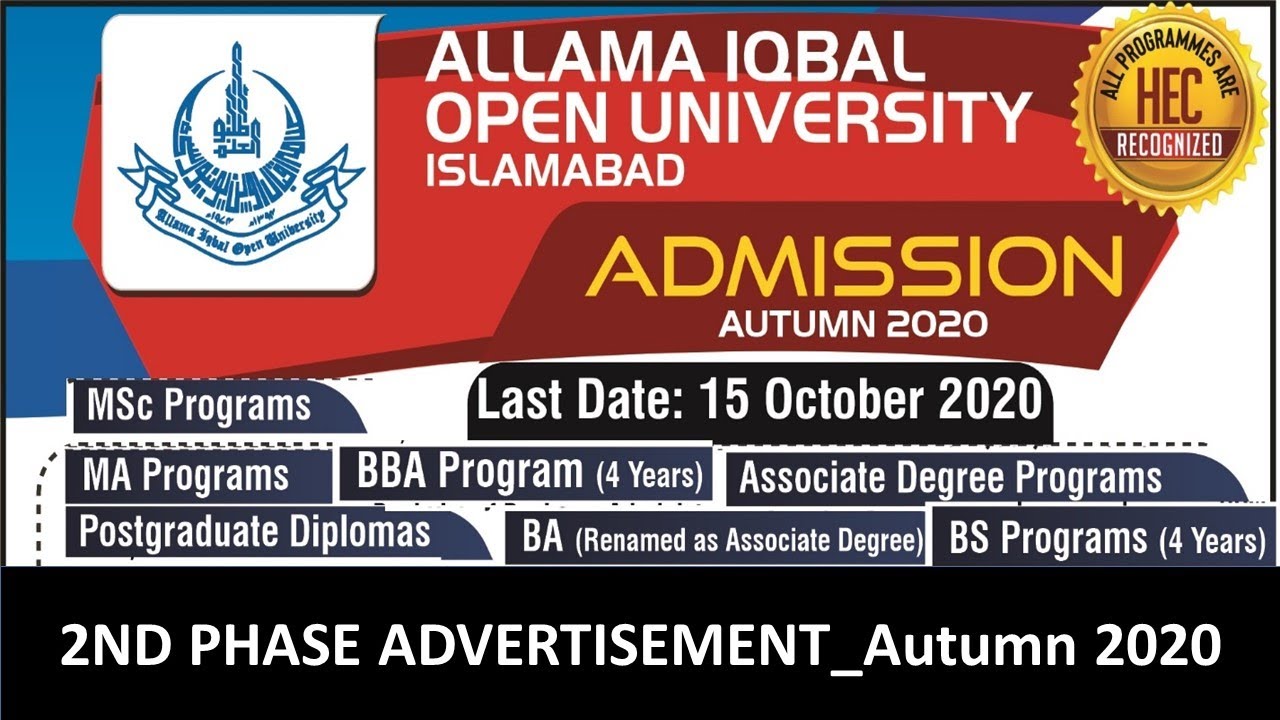 Aiou Admission Autumn 2020 Aiou Admission Open 2nd Phase October Youtube