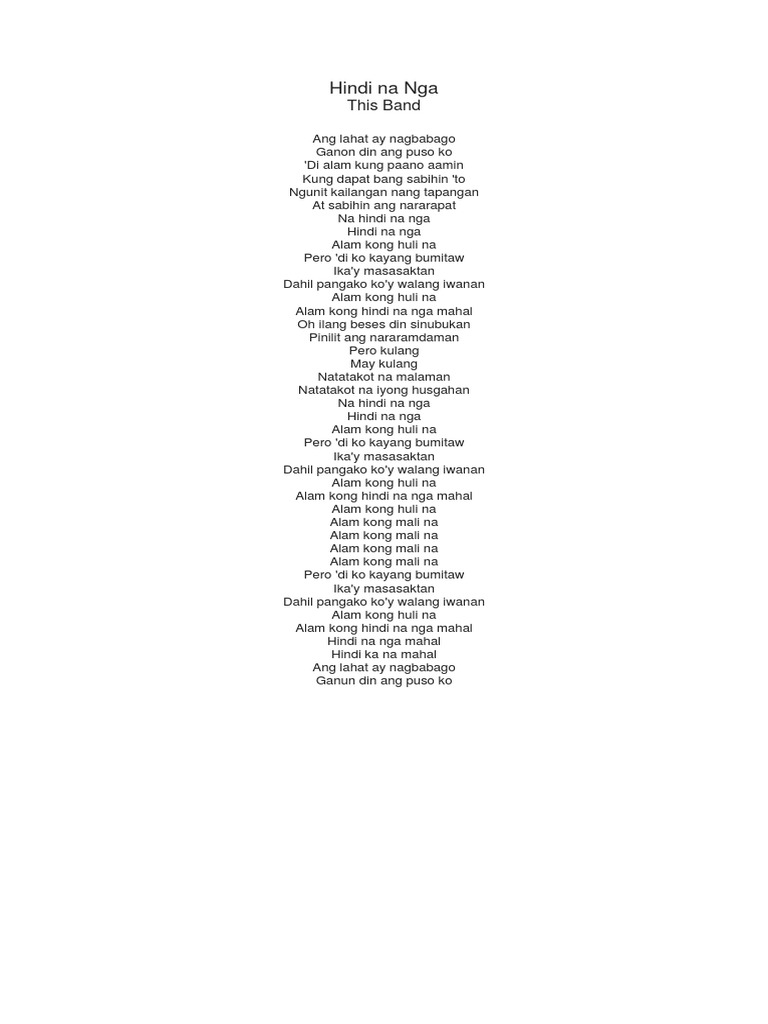 This Band Hindi Na Nga Lyrics Hindi Na Nga This Band Lyrics Music Video Metrolyrics