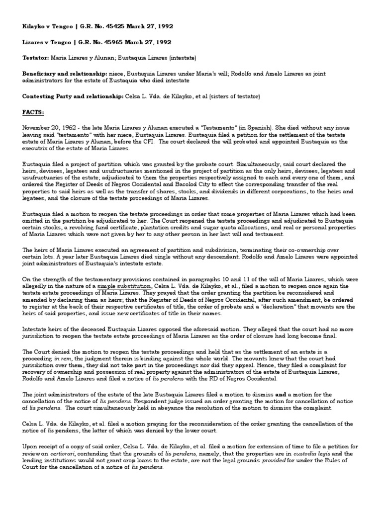 47 Kilayko V Tengco Will And Testament Intestacy