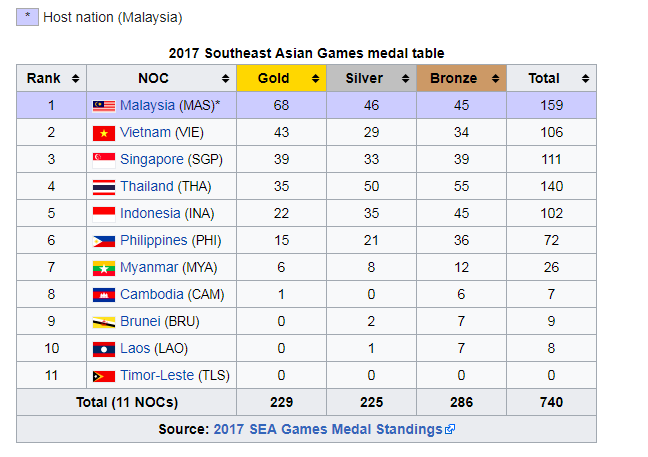 2017 Seagames Medal Tally Update Day 15 Malaysia With 100 Gold Medals Steemit