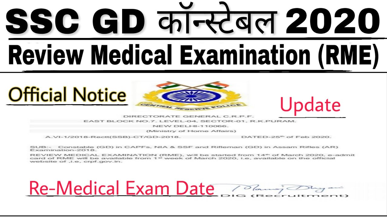 Ssc Gd Re Medical Date 2020 Ssc Re Medical Notice 2020 Ssc Gd Final Merit List 2020 Youtube